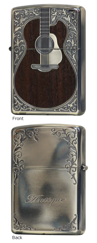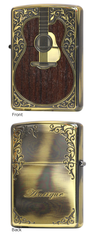 いまにも鳴り出しそうな本物の古いギターの印象を与える魅力的なZIPPOです。また木象嵌加工をすることによって、ぬくもりすら感じられそうなZIPPOとなっております。